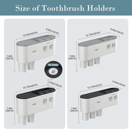 Toothbrush Holder Wall Mounted, Toothbrush Holder for Bathroom with 2 Automatic Toothpaste Dispensers,6 Toothbrush Slots,3 Magnetic Cups,1 Cosmetic Drawer Organizer and 1 Large Storage Tray